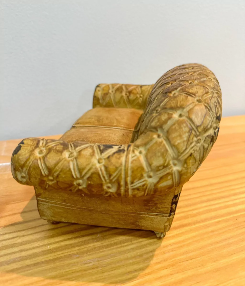 Miniatura de sofá, produzido em resina, uma peça decorativa e colecionável super charmosa para adornar cantinhos especiais da casa, e compor com um olhar criativo e singular.